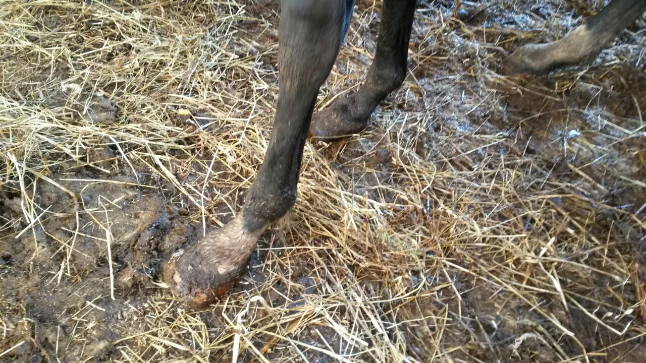 L'Enpa chiama sul posto il veterinario ippiatra dell'IHP per fare una valutazione in base a ciò che è osservabile dall'esterno: oltre a tutto quanto sopra, nella puledra si evidenzia uno stato di magrezza eccessivo, deviazioni angolari degli arti, insufficiente sviluppo muscolo-scheletrico (dovuti probabilmente all'impossibilità di movimento), urine di colore latteo, lesioni cutanee diffuse.