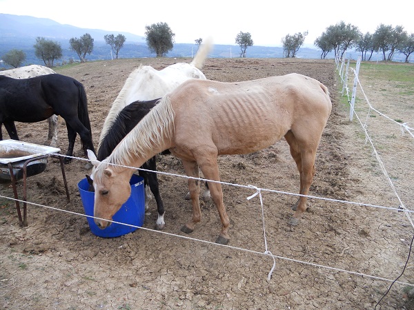 L'associazione si era recata immediatamente sul posto, trovando una cavalla agonizzante e altri cavalli in condizioni precarie, in evidente stato di denutrizione. Purtroppo per la cavalla era troppo tardi: nonostante la terapia d'urgenza tentata dalla veterinaria dell'associazione, dopo alcune ore è stato necessario praticare l'eutanasia per evitare ulteriori inutili sofferenze.